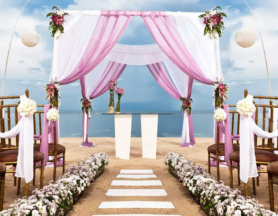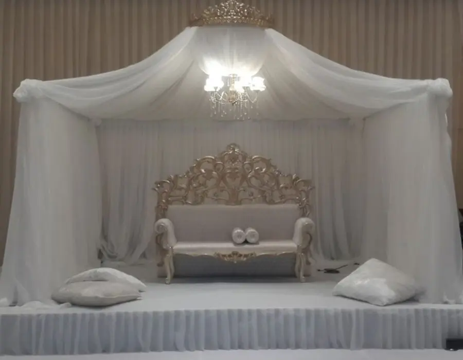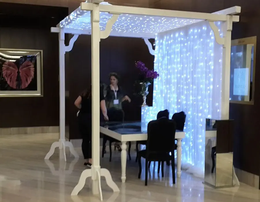 - Kumaş, tül, çiçek ve ışık dekorları